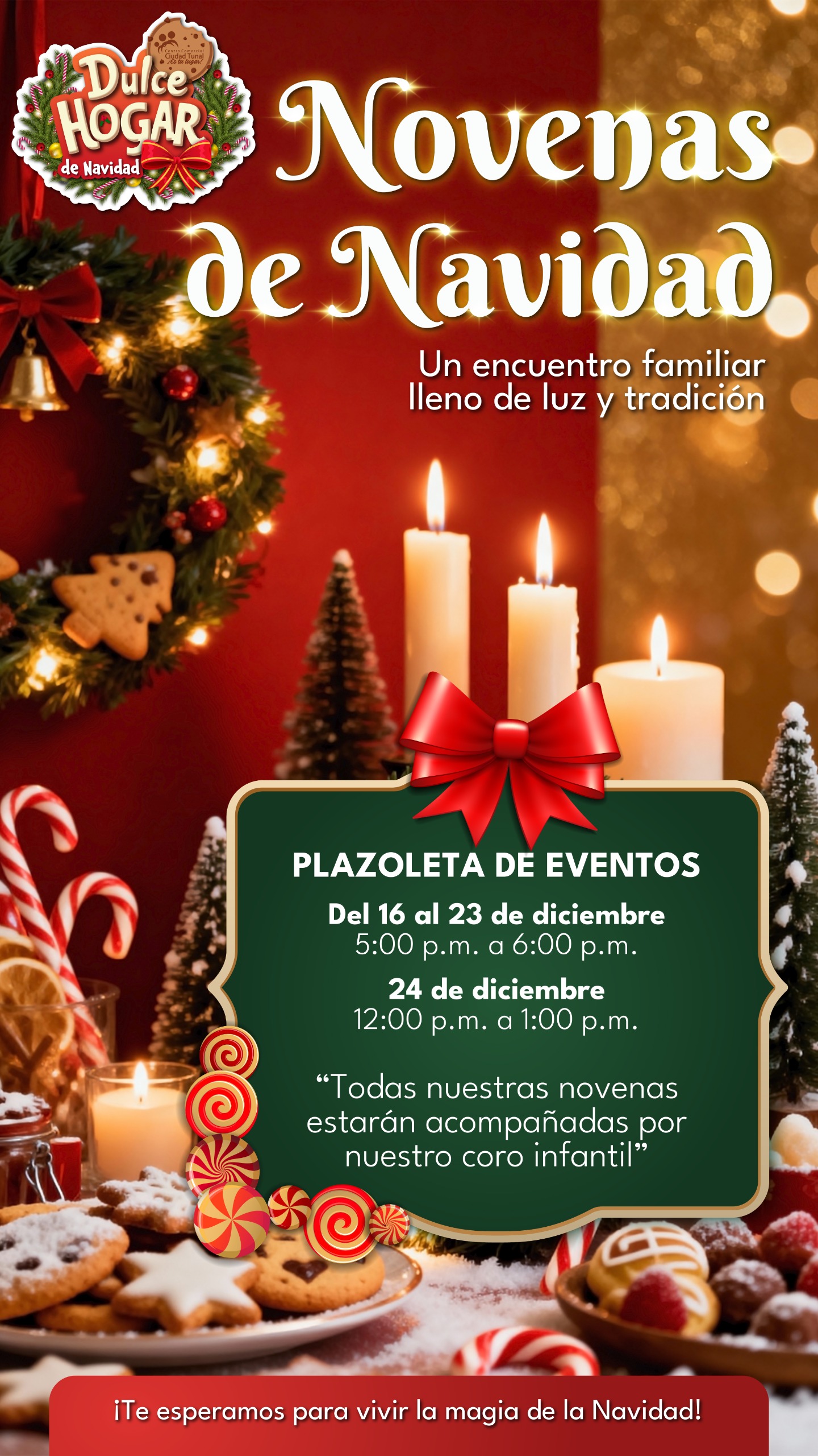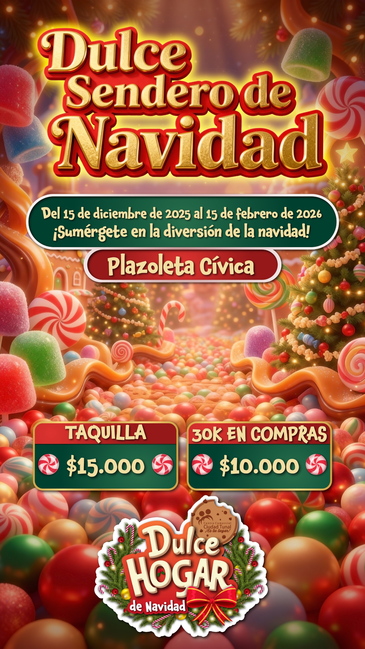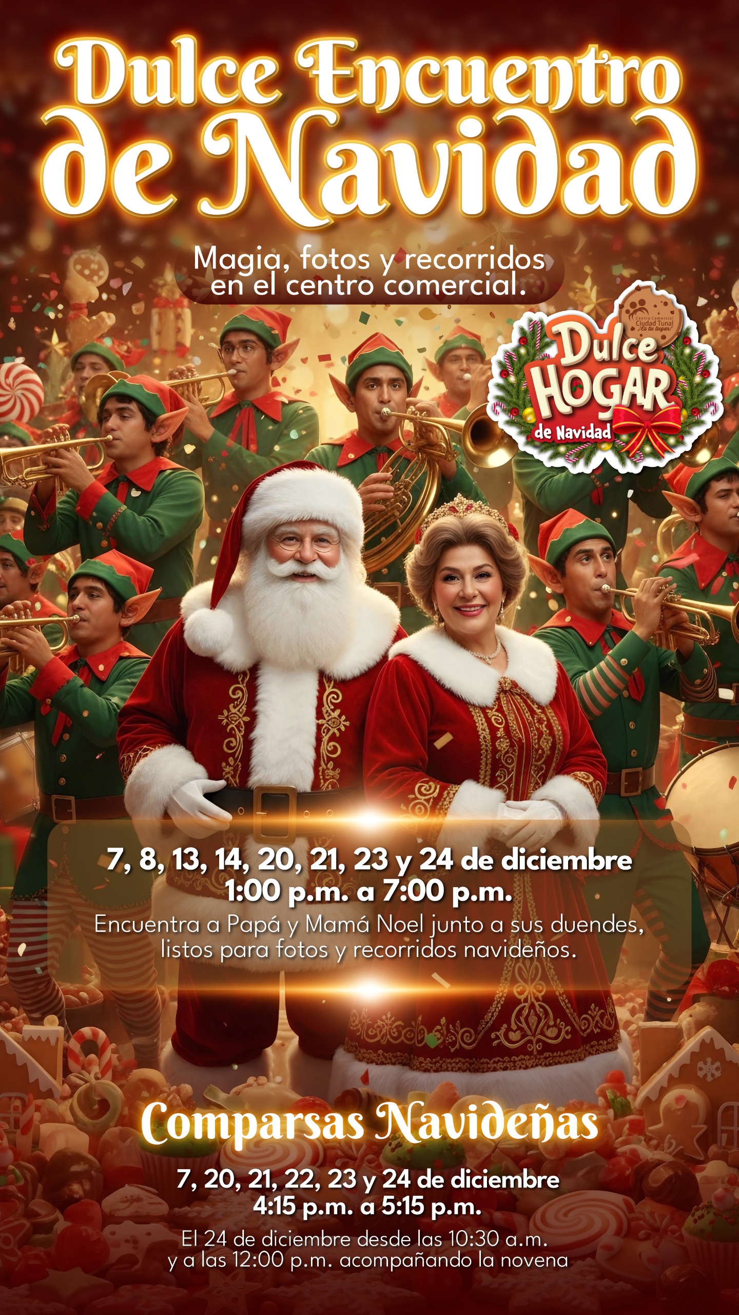 Ven a vivir un Dulce Encuentro de Navidad con Papá y Mamá Noel y disfruta fotos, música y recorridos que llenarán tu corazón de alegría.