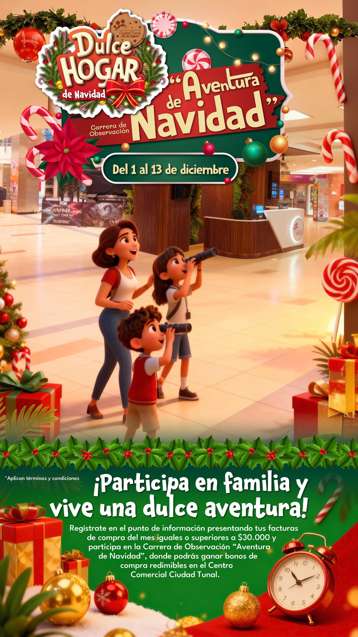 Del 1 al 13 de diciembre, participa en nuestra Aventura de Navidad registrando tus facturas por $30.000 y disfruta una dulce experiencia llena de emoción y premios.